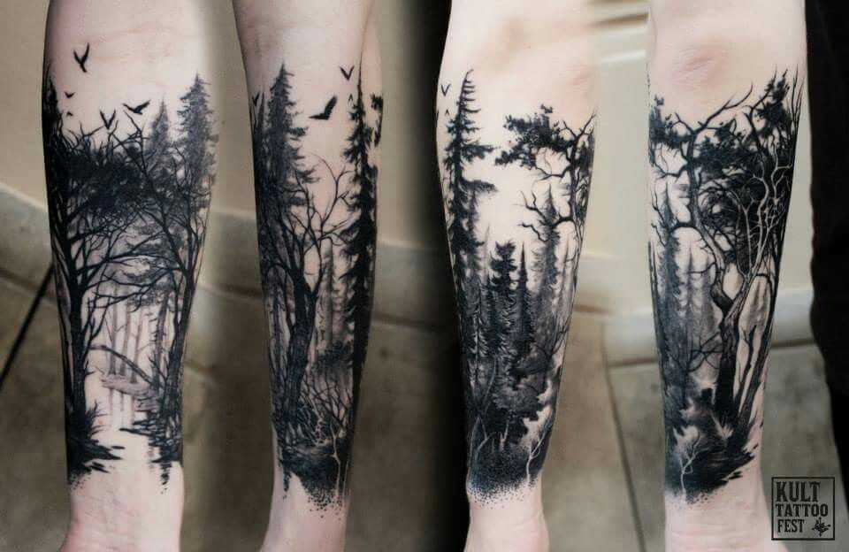 Любое тату пейзажа, включая «Лес», для стороннего наблюдателя является средством осознания внутреннего мира владельца татуировки.