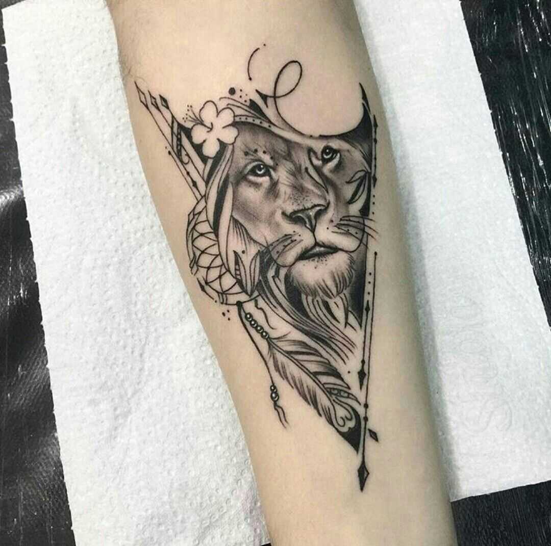 Люди, которые предпочитают минималистическое искусство, могут сделать себе геометрическую татуировку льва. Схематическая иллюстрация выглядит стильно и бросается в глаза.