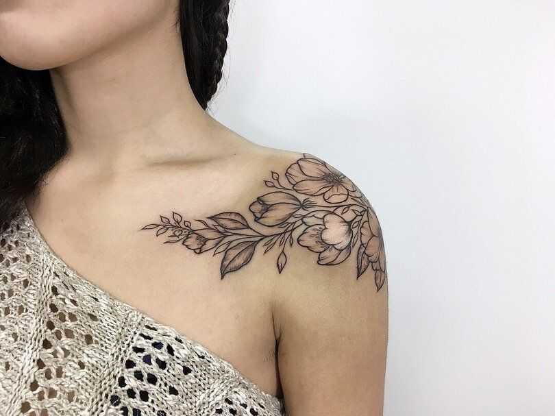 Тату цветы на плече