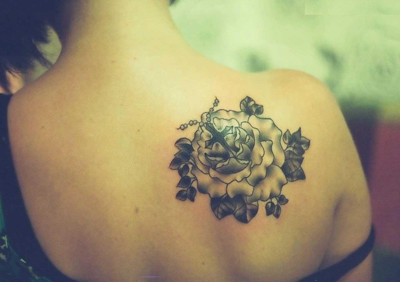 - Крест в виде тату на плече или лопатке девушки является общим символом веры.