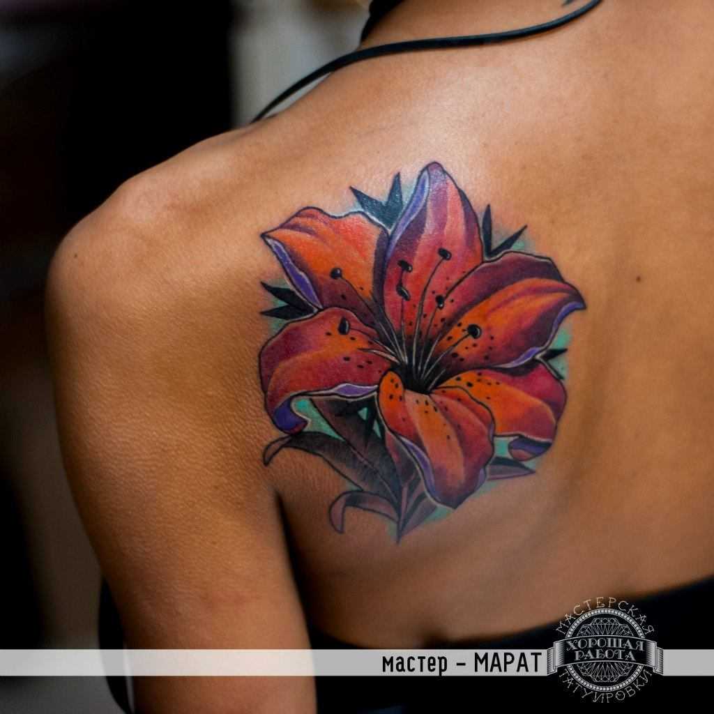 Тату цветы на лопатке для девушек