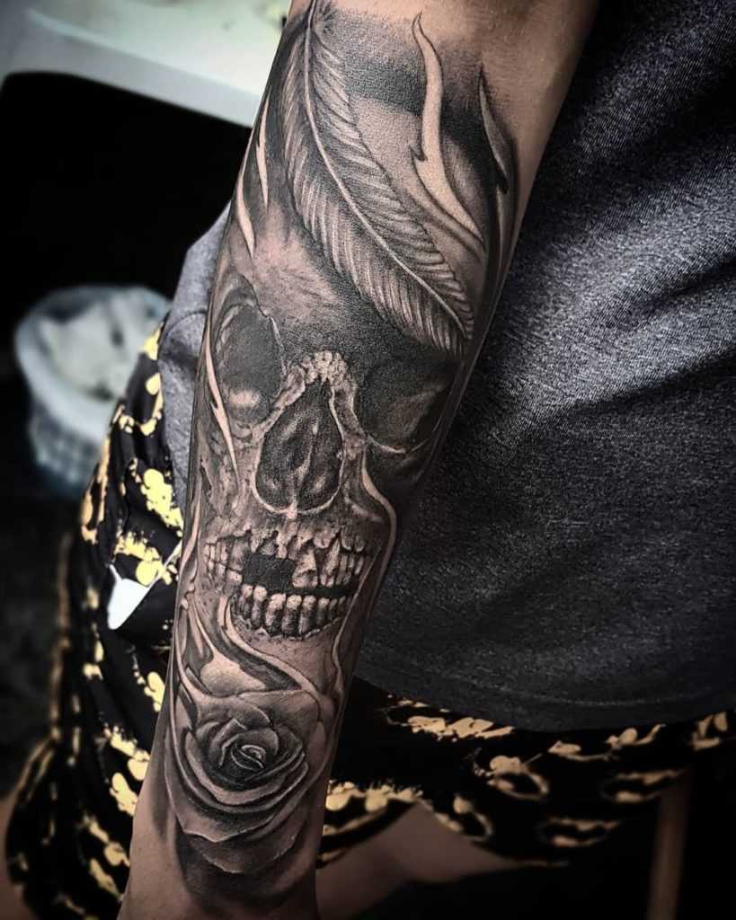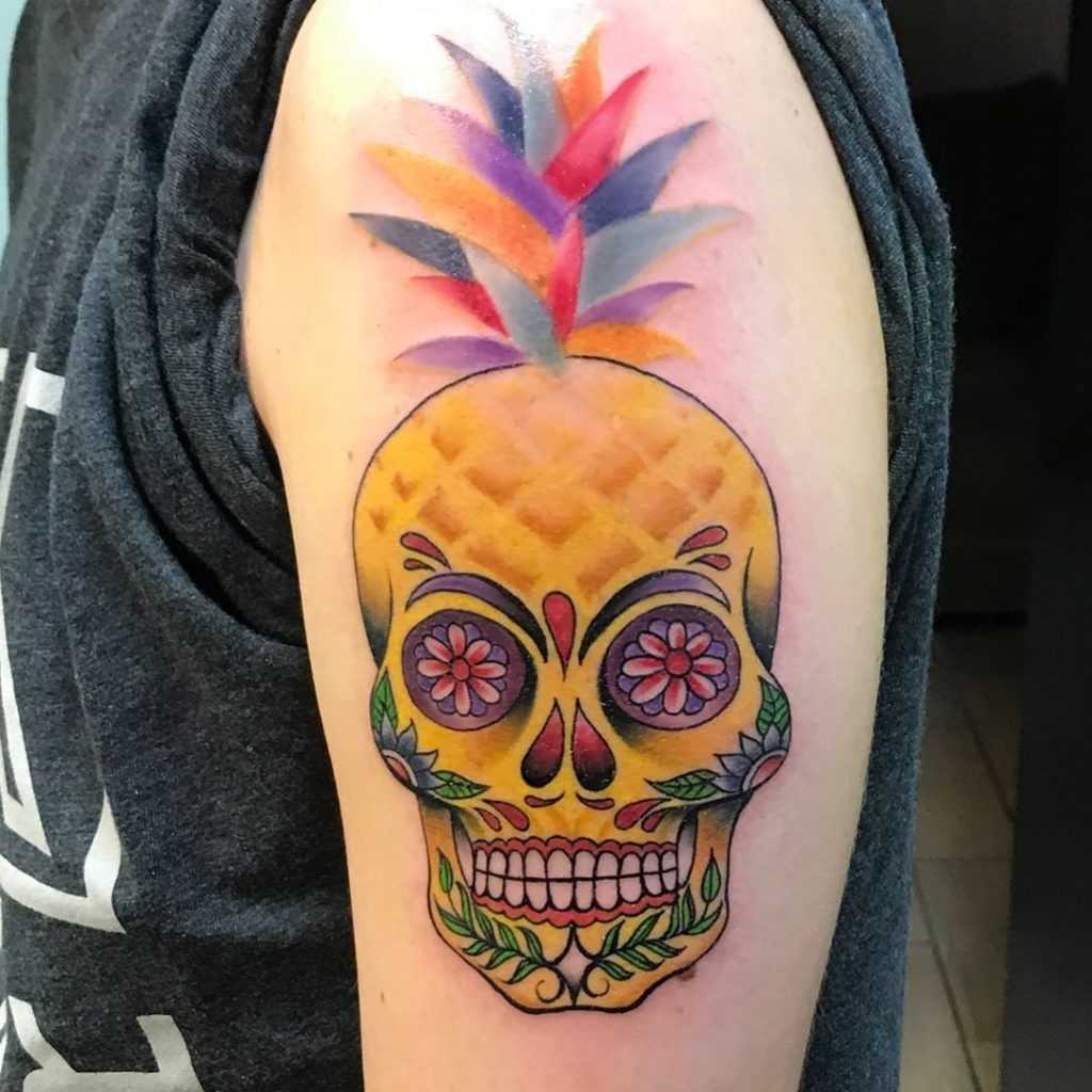 Череп – часть человеческого тела, скелета. Обычно такое изображение внушает людям страх, угнетает и пугает. Но во многих странах, например, Мексике, к изображенному черепу относятся совершенно по-другому. Он является здесь символом возрождения, реинкарнации и говорит о том, что от жизни нужно брать все, сегодня и сейчас. Мрачные тату свидетельствуют о смерти, печали, потерях и утратах, более яркие, украшенные – наоборот могут стать символом беззаботности, любви, мудрости.