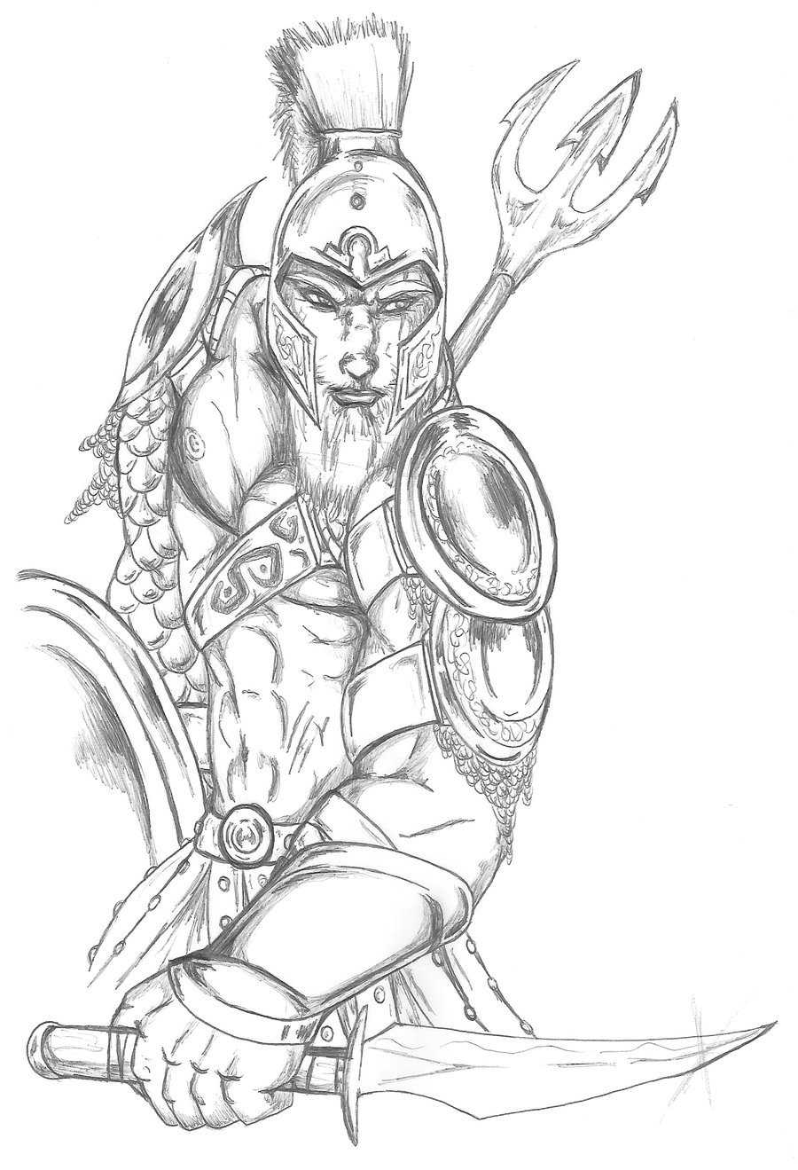 Тату в виде бюста гладиатора, с права в полной амуниции перед боем