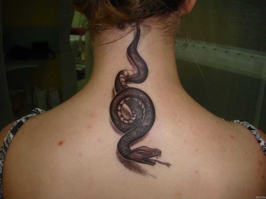 4Змеи – соблазнение, опасная сексуальность. Согласно легендам и религиозным трактовкам змея – первородный искуситель и предвестник грехопадения. Набить такое тату решатся только смелые женщины.