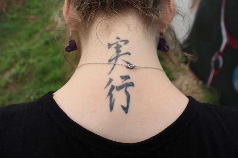 Многие берут за символику иероглифы некоторых стран, которые служат обладателю тату — талисманом. Он защищает от всего негатива, порчи и сглаза. Такая татуировка может дать мотивацию девушке для достижения своей цели. Каждый иероглиф обладает определённым значением.