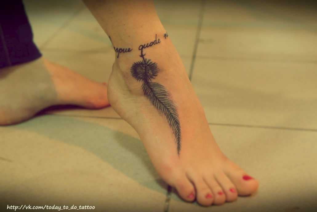 При желании набить надпись, следует придерживаться коротких фраз. Если цитата очень длинная, её можно пустить вокруг щиколотки – при необходимости, в несколько строчек.