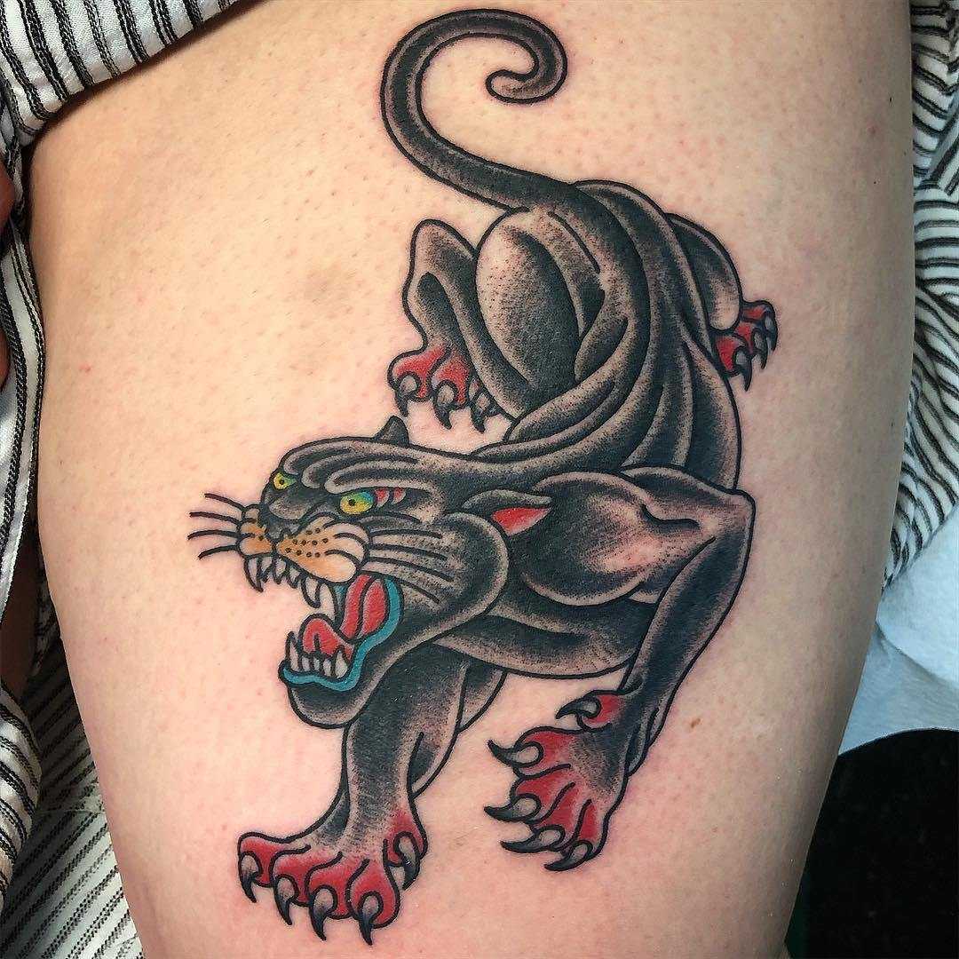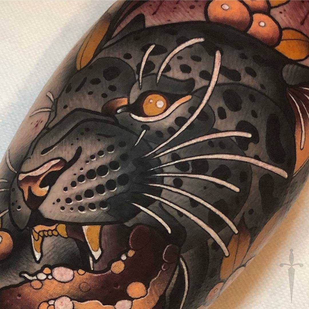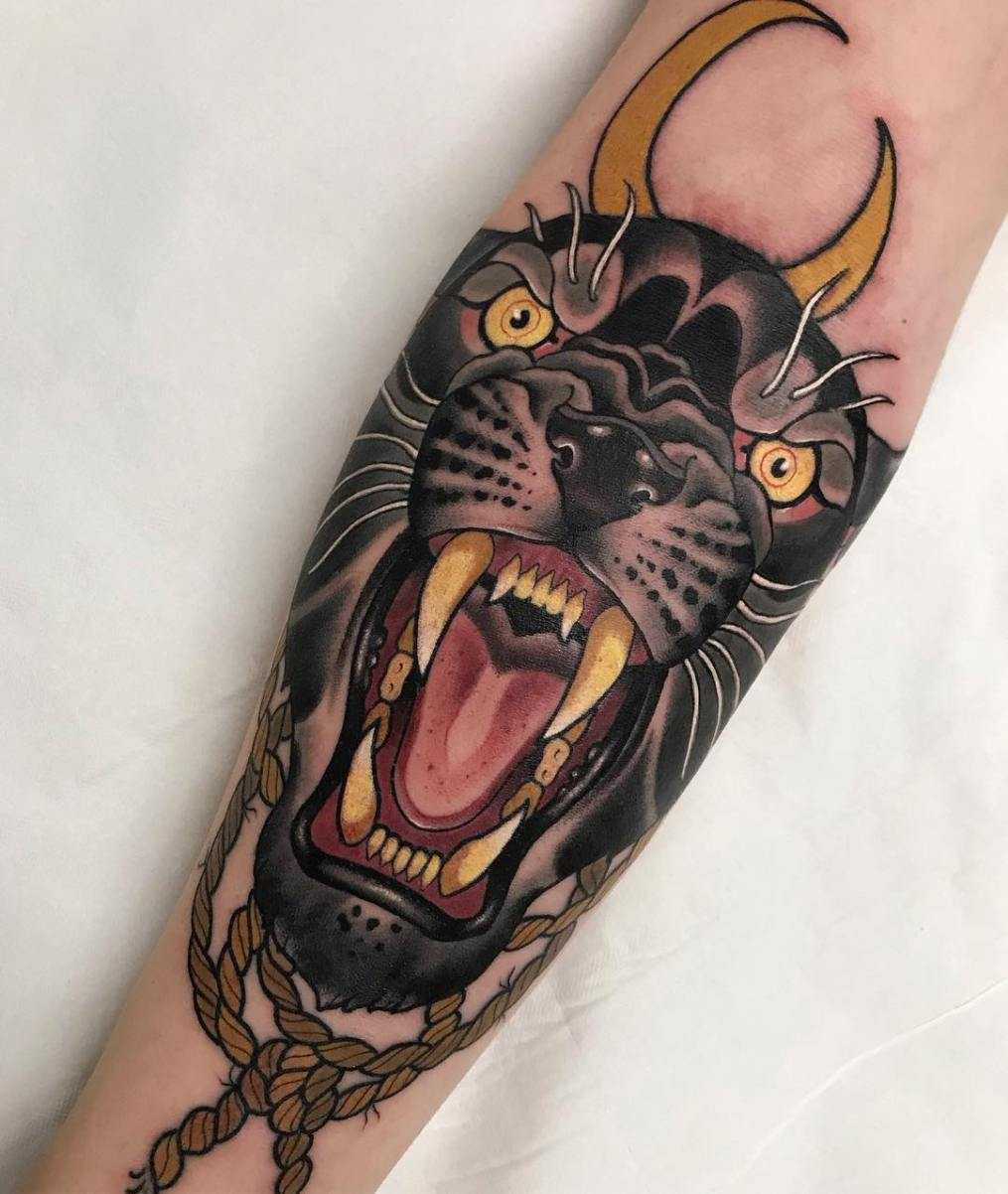 - Оскал пантеры в стиле олд скул символизирует мощь, мужество, несгибаемость. Обладатель подобного рисунка всегда готов к бою. Он отстаивает свои интересы, умеет постоять за себя и свою семью.