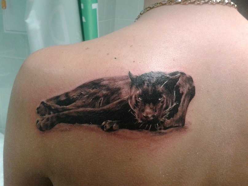 Пантера на спине – это оберег и талисман, а также пример для подражания. Спина является тылом мужчины и его семьи, поэтому чаще всего ту изображают агрессивное хищное животное. Пантера говорит о готовности мужчины, что перед вами не слабак, а лидер.