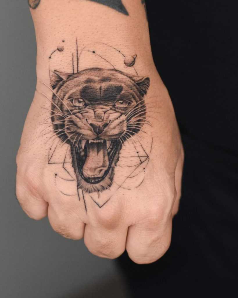 В области около кистей рук часто набивают тату в качестве оберегов. Пантера также может быть талисманом для того, чтобы оградить мужчину от врагов, злых помыслов и опасности. Также пантера на запястье может говорить о том, что мужчина обладает схожими качествами.