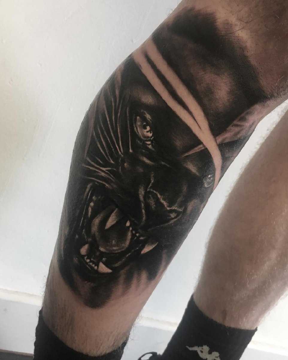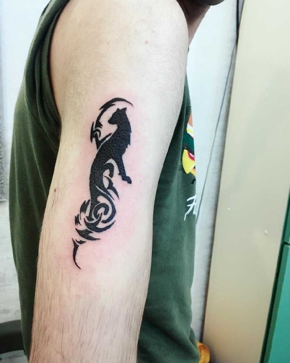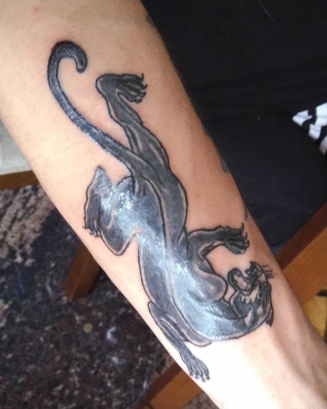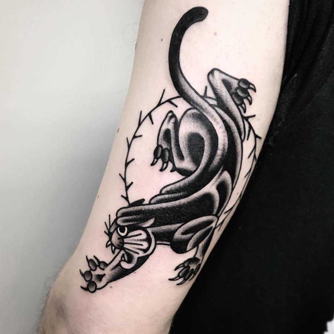 Татуировка черная пантера на теле парня говорит о том, что он чувствует себя воином. Возможно, он занимается боевыми искусствами. Такой человек не даст в обиду ни себя, ни свою семью.