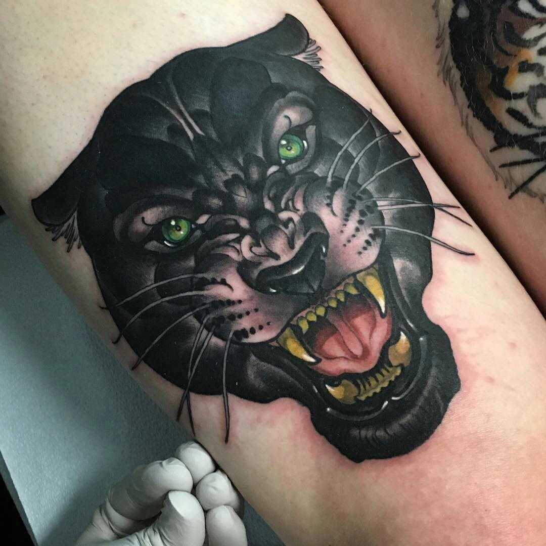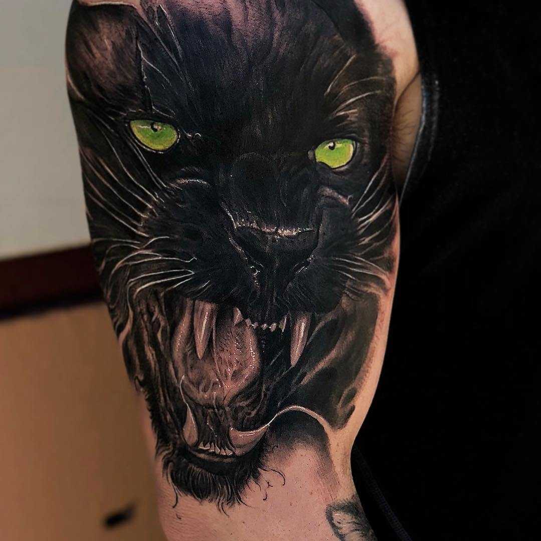 Тату с оскалом пантеры символизирует решительность, несгибаемую волю, мощь и мужество.