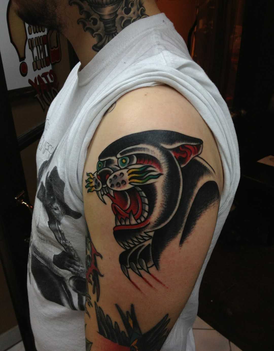 Чем ближе тату к лицу, тем больше смысла она предусматривает. Пантера на плече является символом надежности мужчины, что в любой ситуации он готов проявлять силу, лидерство, агрессию, если надо, чтобы отстоять свои права и честь своего семьи