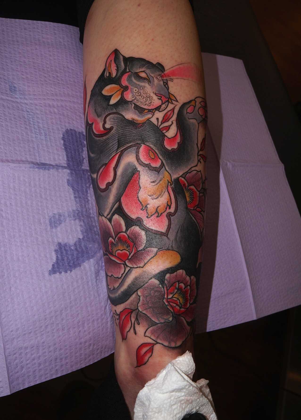 Хотя чаще всего хищную кошку накалывают девушки, многие парни также отдают предпочтение этому зверю. Для сильного пола изображение означает силу, своенравие, стремление к свободе и нежелание привязываться к кому-либо.