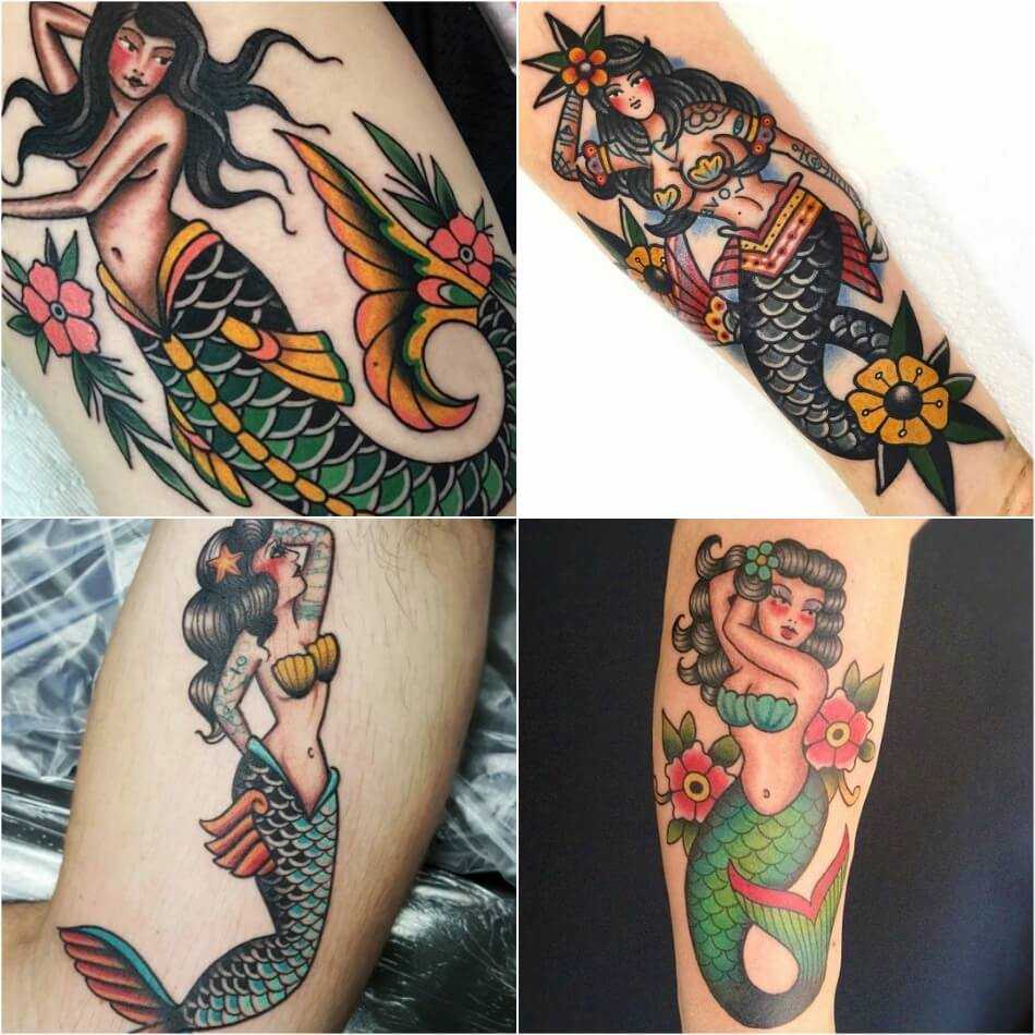 Тату Русалки Олдскул
