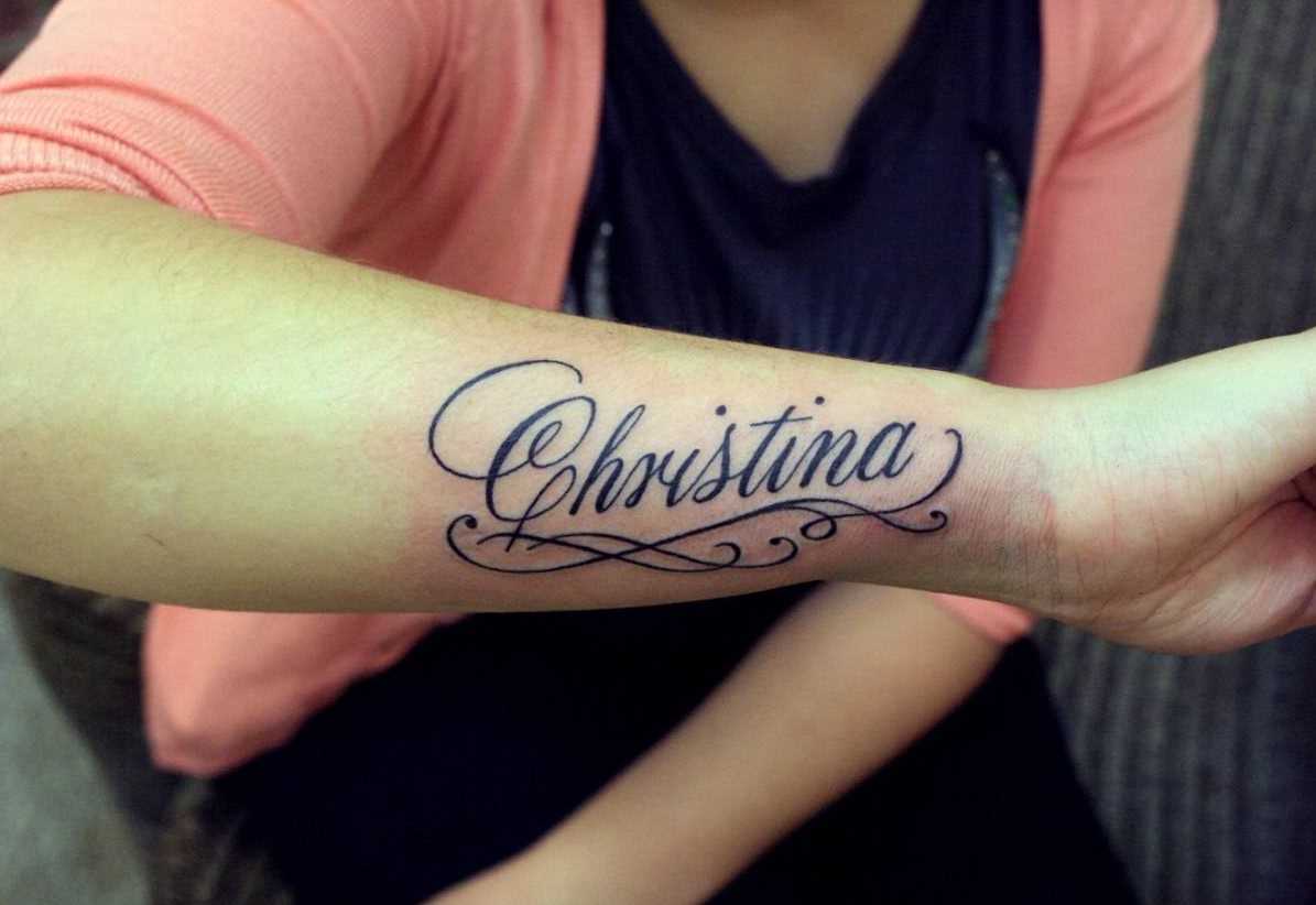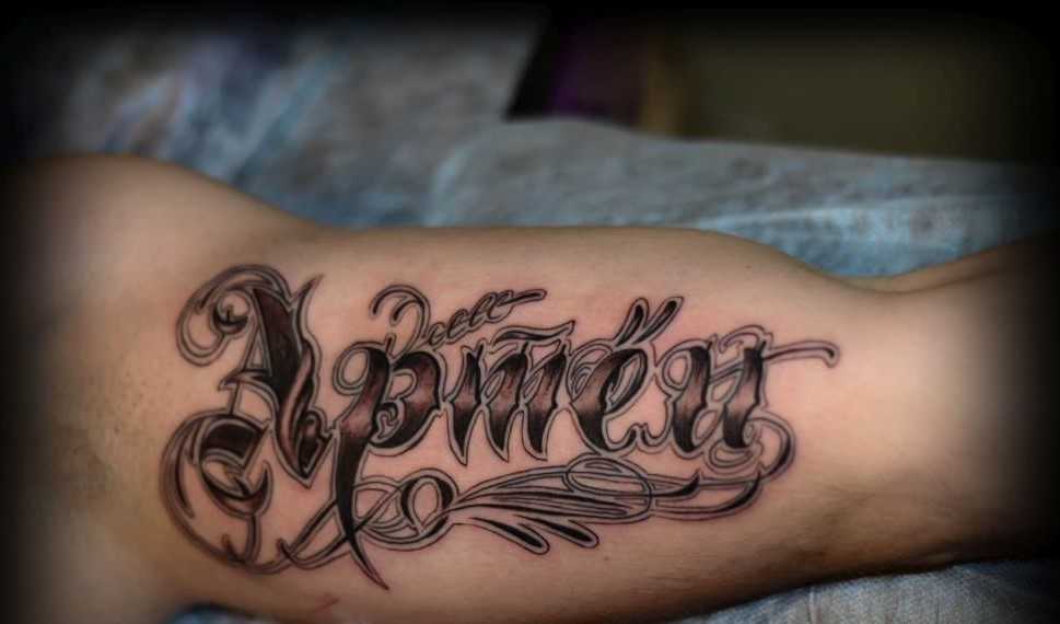 Татуировки имена будут превосходно смотреться в самых разнообразных стилях, все зависит лишь от желания заказчика. Сильные, волевые, мужественные личности могут нанести имя готическим, типографским шрифтом, можно создать видимость «нацарапанной» надписи. Утонченные, легкие натуры могут выбрать красивый каллиграфический шрифт, обрамленный орнаментом или другими декоративными элементами.