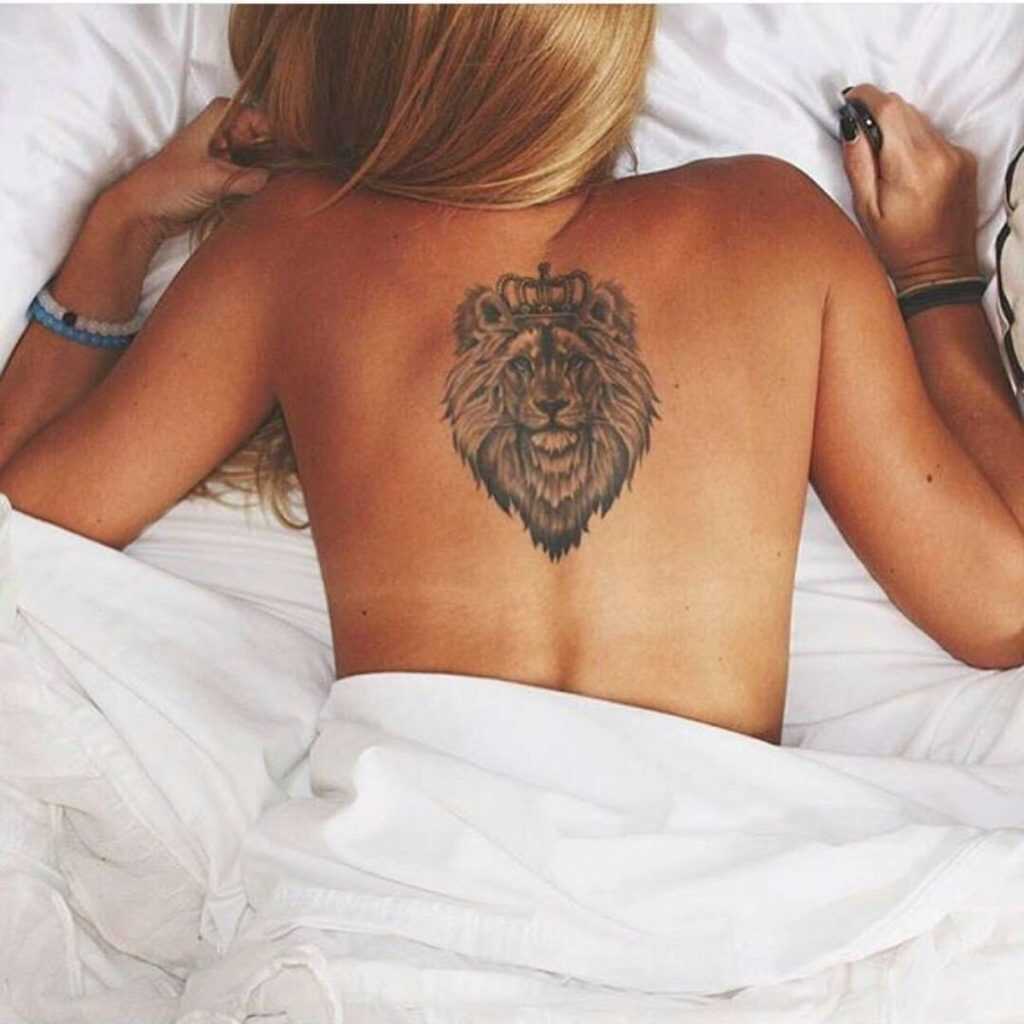 Лев на спине или лопатках символизирует лидерство. При этом у человека, выбравшего такое расположение, должно быть желание руководить и даже подчинять других людей. Тату на спине иногда задумывается масштабной, разноцветной, с дополнительными элементами.