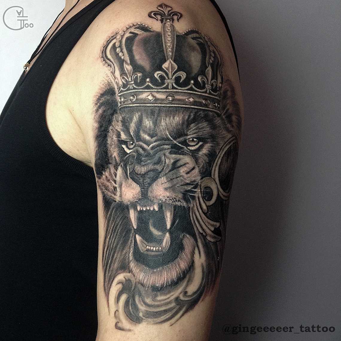 Вы думаете, что лев — король джунглей? Что ж, у нас есть для тебя тату. Почему бы не добавить корону? Так что более чем ясно, кто такой король, и нет никаких недоразумений или чего-то подобного.