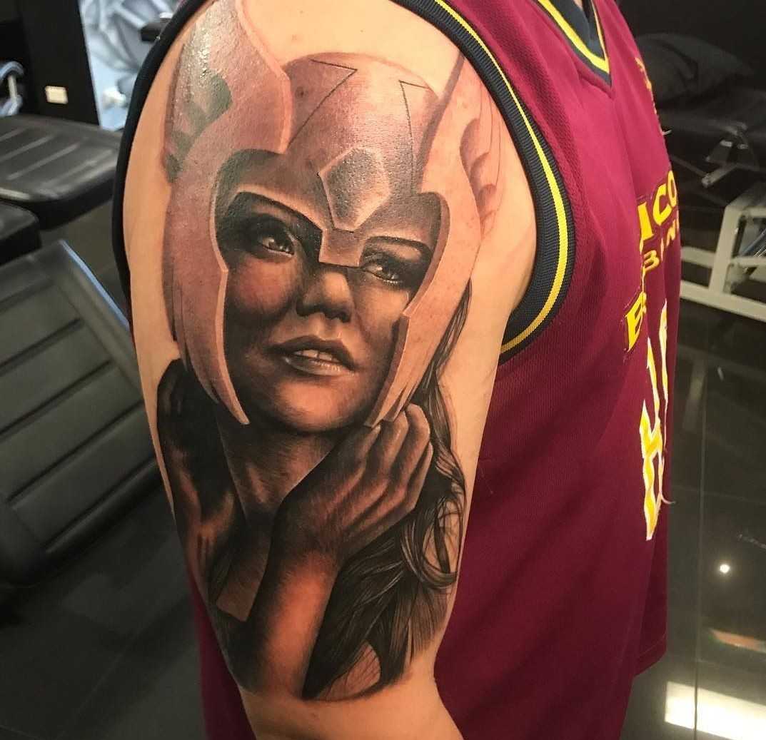 Женщина-воительница – та же Валькирия. Смысл тату – сильный оберег, гармония силы духа и необычайной женственности, легкая агрессивность и энергия природы. Валькирию часто считают покровительницей и защитницей беременных женщин, а также юных дев, мечтающих о ребенке. Говорят, что данный образ способствует тому, что малыш родится здоровым, сильным, как настоящий воин.