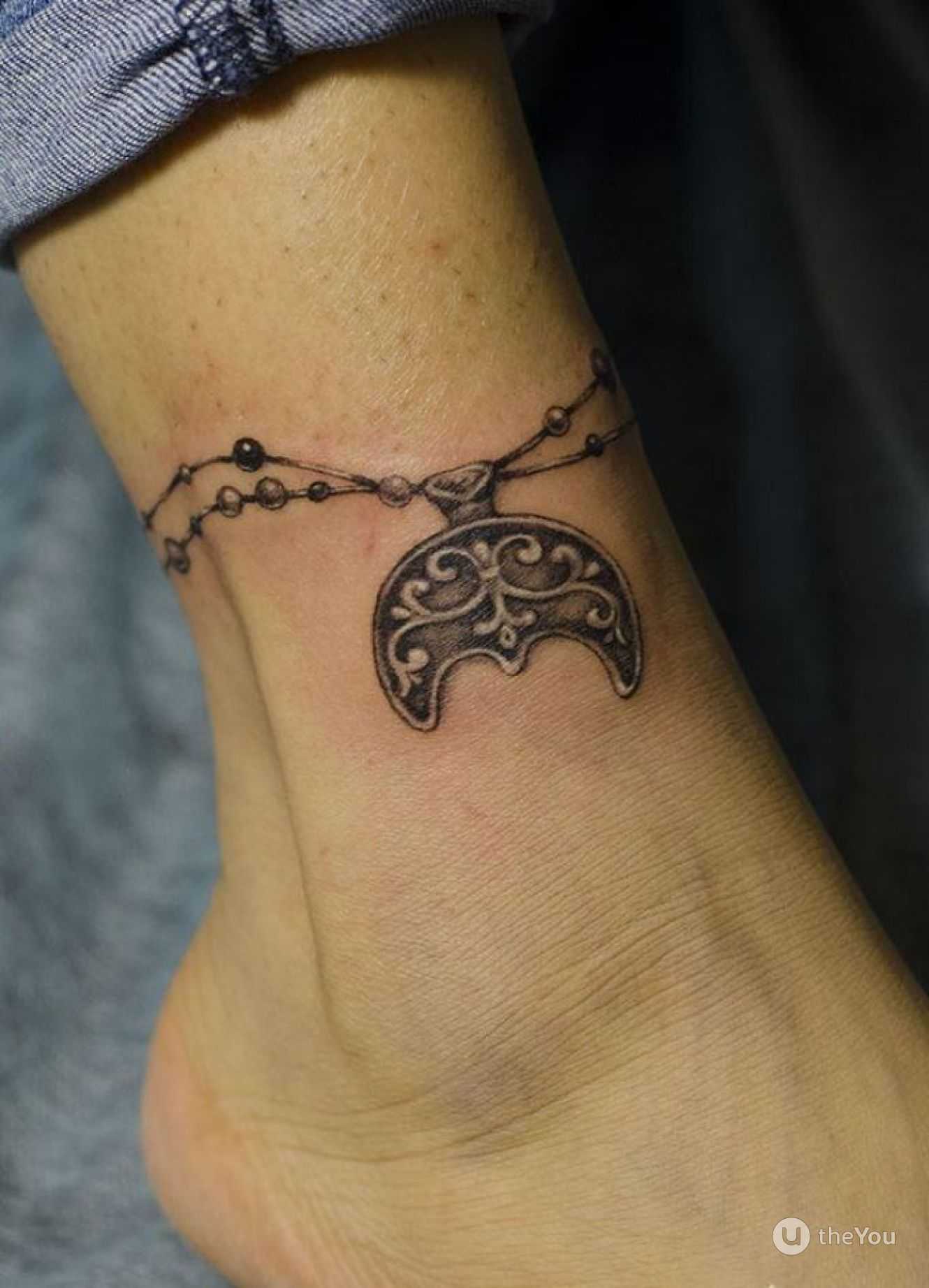 - Болезненность зависит от места на щиколотке и самого рисунка. Если девушка выберет изображение в виде браслета, ей придется запастись терпением и силой воли, потому что мастер затронет иглой малоберцовую и большеберцовую кости. А если нательный рисунок предполагает изображение цепочки и спадающей вниз подвеске, задействована будет и таранная кость;