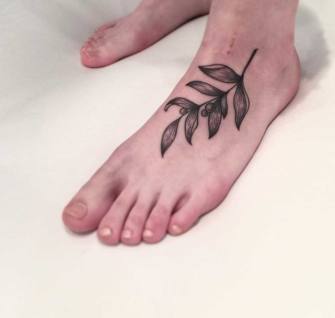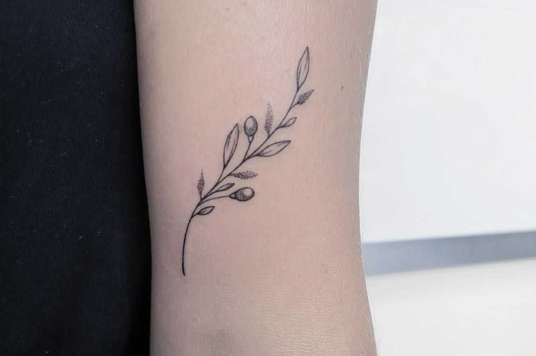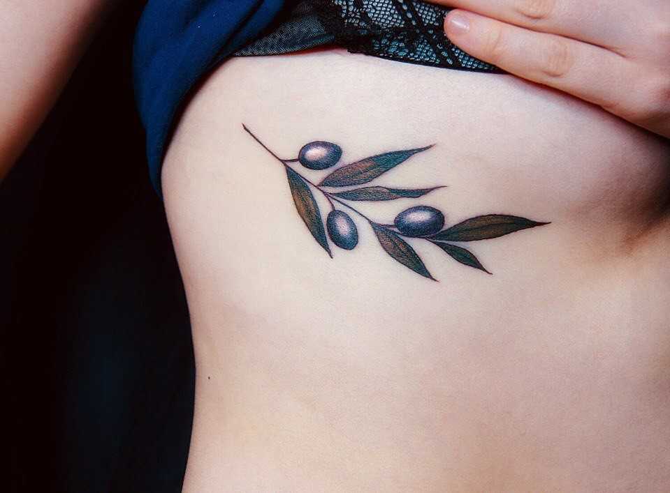Это — маленькая татуировка. Таким образом, вы можете расположить её на различных частях вашего тела. Кроме того, очень необычно добавлять какие-либо другие элементы в изображение. Самые красивые примеры — это одна или две скрещенные ветви с листьями и несколькими оливками на них. Вы увидите, что большинство идей выполнены в черно-серых тонах, что придает им еще большую утонченность и простоту.