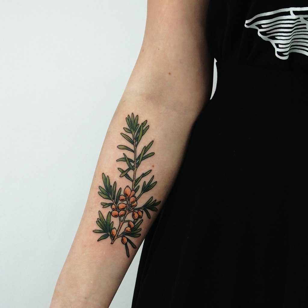 Интересно, что на значении тату не отражается цветовой стиль изображения. Но даже одна веточка растения станет для носителя оберегом, залогом стабильной жизни в достатке.