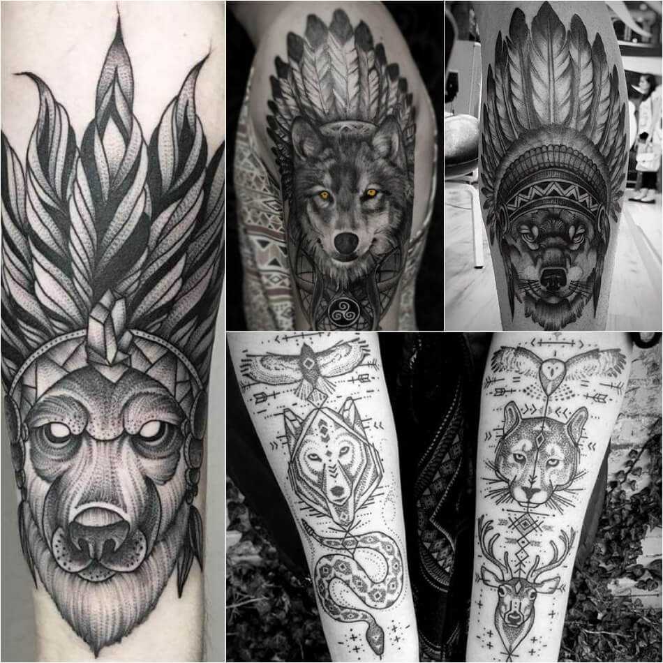 У североамериканских индейцев принято относиться к представителям волчьей стаи уважительно, ведь они считаются проводниками в другие миры, важными тотемными животными. Встречаются тату, где изображены ловец снов и голова волка — символ защиты от злых духов, надежный талисман для обретения нужных качеств: осознанности, сильной интуиции, уравновешенности.