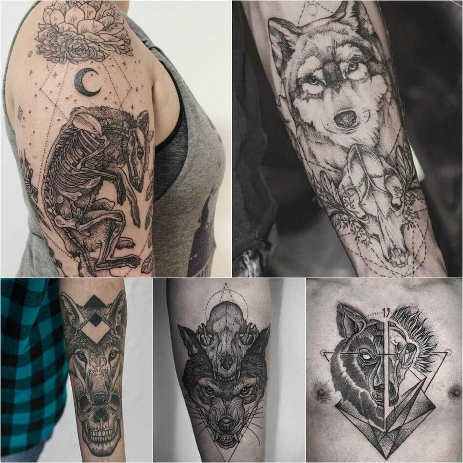 Татуировка волка наносилась на тело еще славянами. В те времена она обладала особым смыслом, так как обозначала, что ее обладатель обладает ловкостью и на него можно положиться в разных ситуациях. Тату данного животного можно было сравнить по силе и мощью чертога или кельтских рун, настолько сильным энергетически является это изображение. Однако после того как христианство вступило в свои права, волк стал олицетворением чего-то негативного и черного, то есть воплощением зла, жестокости, агрессии и смерти. Таким образом, рисунок черепа животного означает связь с потусторонним миром.
