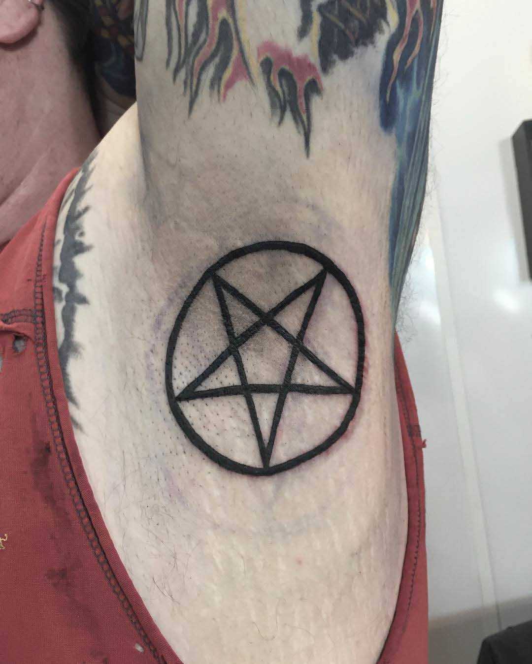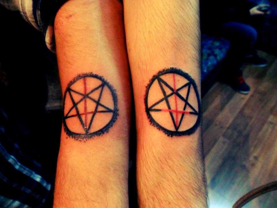 В основном для окраса пентаграммы выбирают черные чернила, но оригинально смотрится и красный цвет. Яркие цвета выбираются только тогда, когда присутствуют еще какие-то элементы. Многие молодые люди с целью «устрашающего эффекта» выбирают определенные виды направлений при выполнении тату петаграмма:
