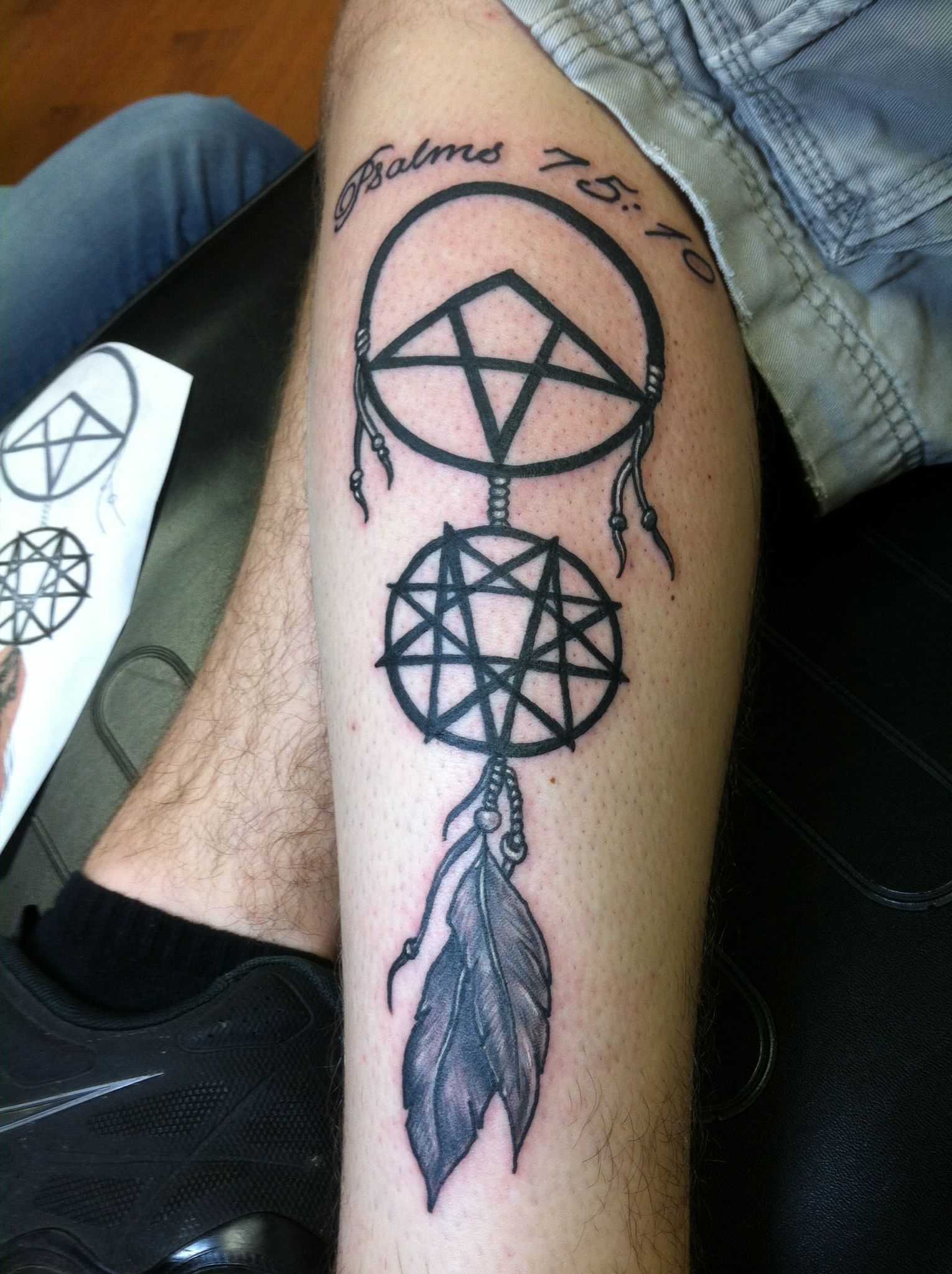 Люди христианской веры имеют другое обозначение такого рисунка. Они считают, что это 5 смертельных ран, которые привели к гибели Иисуса Христа. Также у христиан была и такая версия расшифровки пентаграммы: две верхние вершины — это божественная и человеческая природа Иисуса, а остальные три вершины — это Отец, Сын, Святой Дух (Святая Троица). Татуировки в виде пентаграммы в данное время несут положительный характер. Рисунок может означать везение, процветание, молодость и здоровье, уважение к знакам природы, стремление к лидерству.