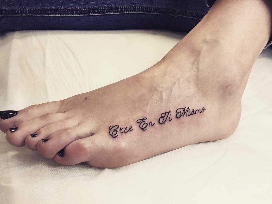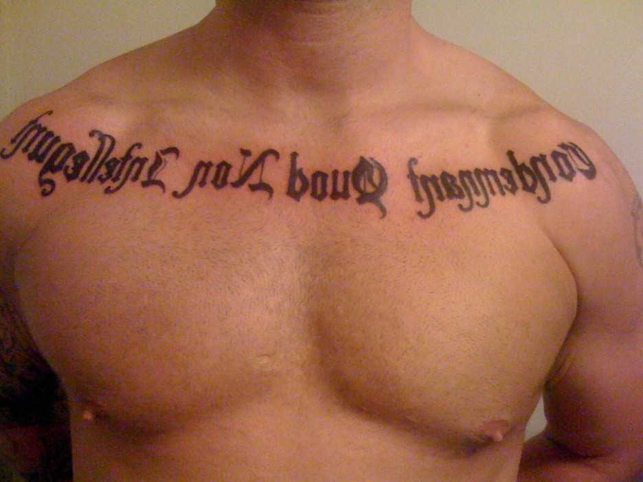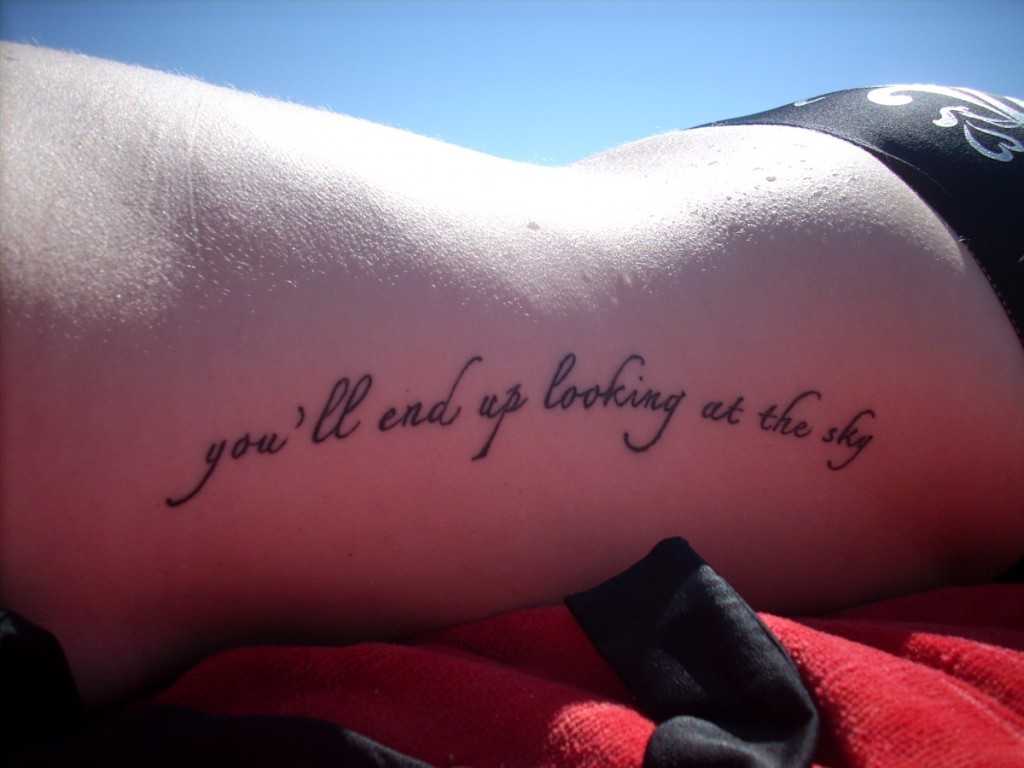 Если выбрали мотивационную фразу, глупо наносить такое тату на спине, шее, задней части плеча, ног, она должна выполнять задуманную функцию, быть на виду, в идеале – на руках. А вот молитвы, защитные надписи, наоборот, лучше разместить на спине, на шее. Смелые мужчины создают жизненные девизы на груди, хотя эта область болезненная, девушки делают небольшие любовные послания под грудью. Выигрышно, сексуально смотрятся смелые надписи внизу живота у женщин. Это отличный способ спрятать послеродовые шрамы.
