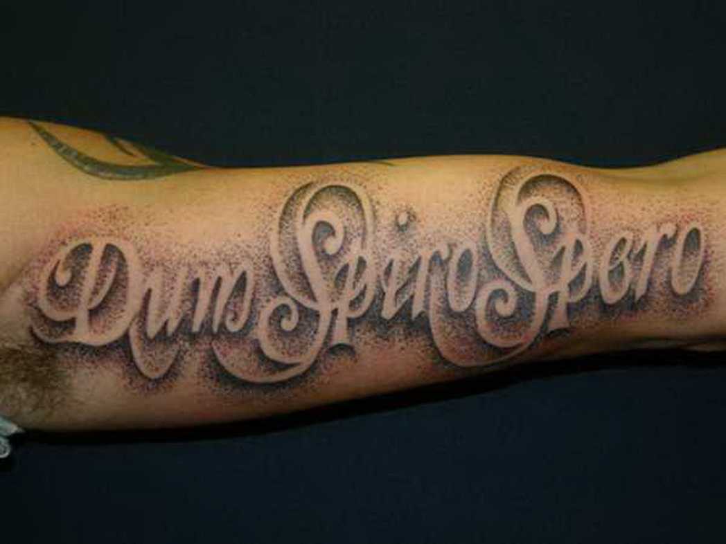 Особых рекомендаций для размещения тату на латыни нет, где нравится – там и делайте, но помните, где находятся самые безболезненные участки (на мягких тканях, как можно дальше от костей и нервных окончаний): предплечье, внешняя сторона рук до запястья, ягодицы, задняя сторона шеи, где большая прослойка жировой и мышечной ткани. Бывает, что хочется сделать татуировку в более интимном месте, для любимого человека. Значит придется потерпеть. Длинные цитаты поместятся лишь на спине или груди. Выгодно смотрится тату надпись на руках или ключице, если использовать мелкий шрифт.