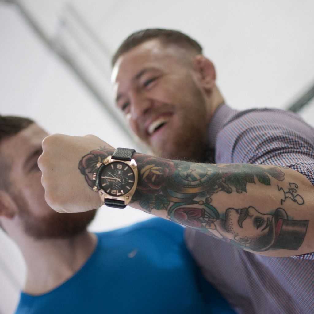 Руки для борца – главный инструмент, которым он добивается побед, защищает себя и честь команды. По этой причине татуировки Конора Макгрегора играют роль для него самого в первую очередь. На левом предплечье нарисована роза с часами и точным указанием времени. Красивый цветок разрезается кинжалом.
