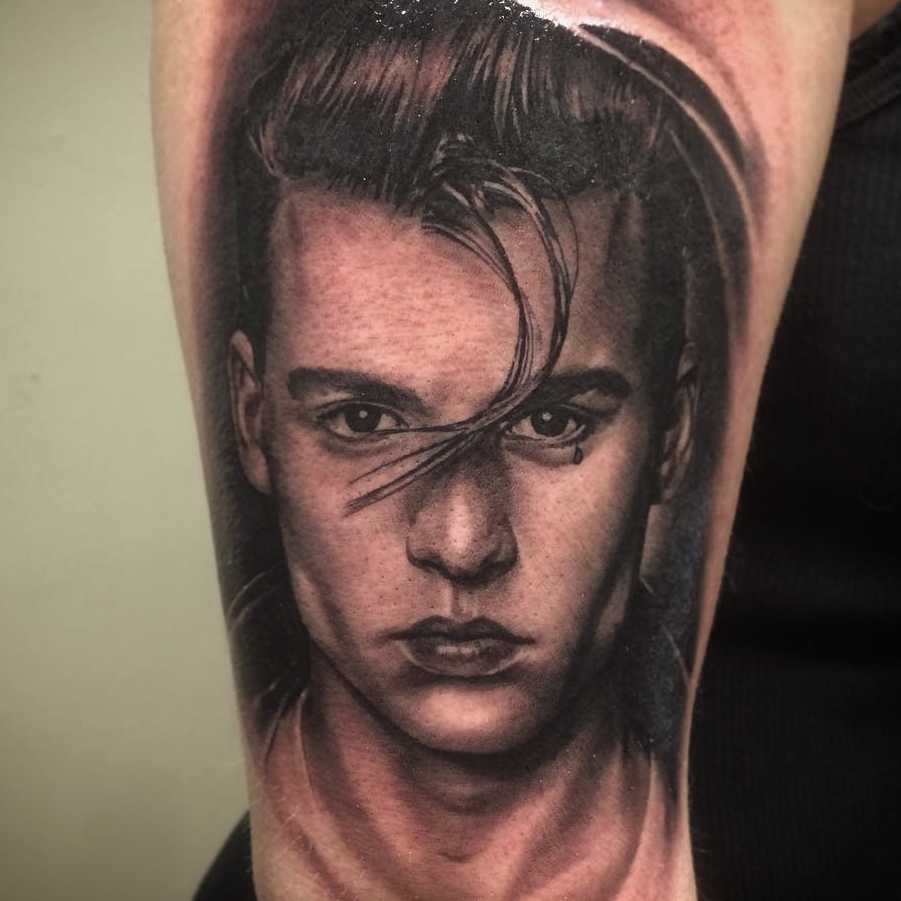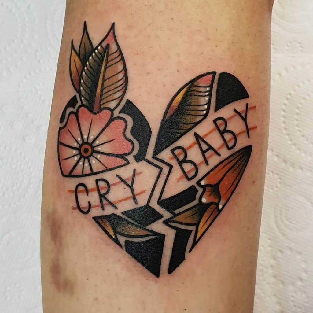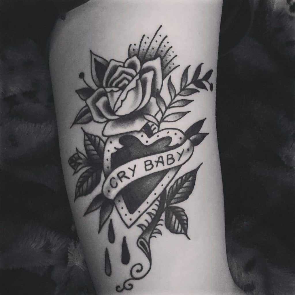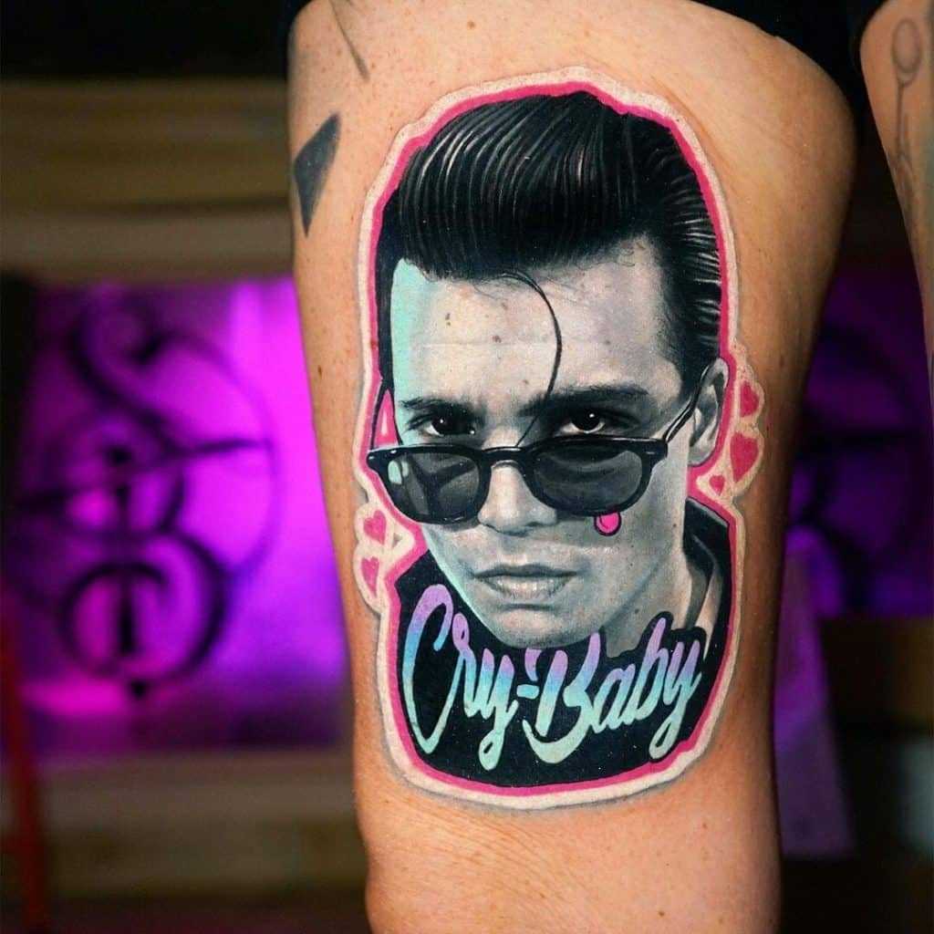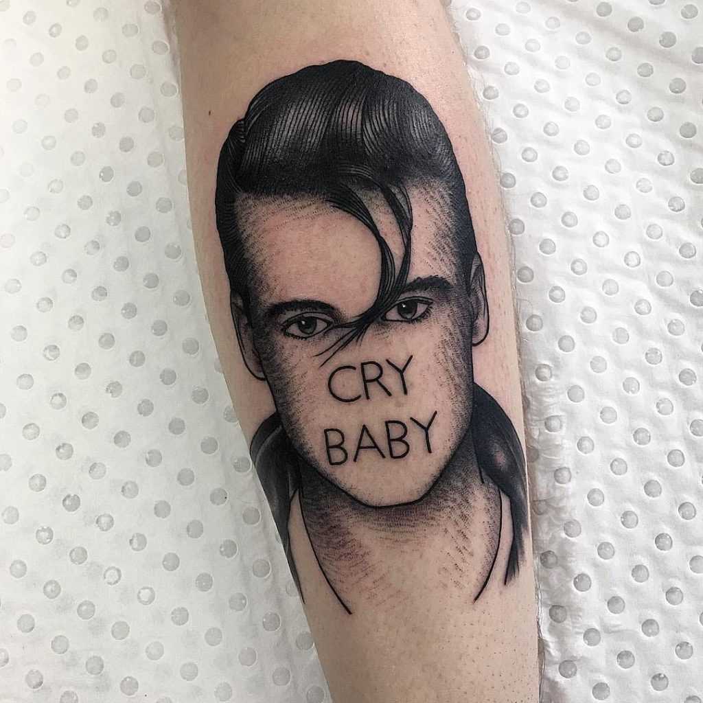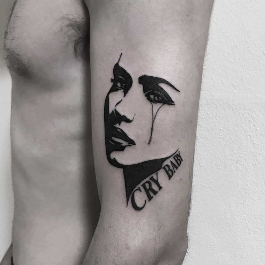 Another popular crybaby tattoo design is that of Johnny Depp. The iconic actor made a statement in the ‘cry baby’ movie in the 1990s and many chose to get a tattoo of him inked on their skin. You can see an example of this Tattoo design in the image above.