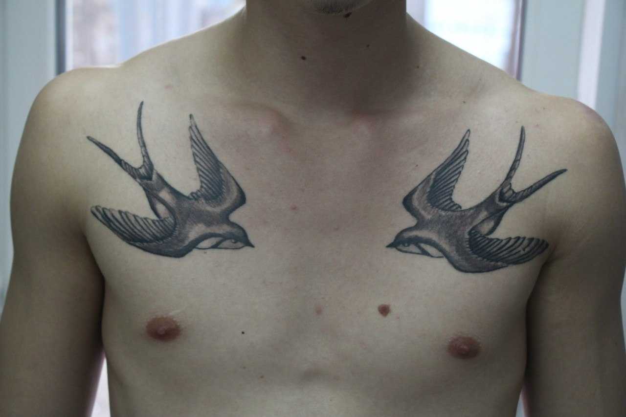 Область груди всегда отвечает за эмоциональные переживания и сердечные дела. А если это тату ласточка, то это говорит о мечтах свободного мужчины создать семью, семью — сохранить брак и крепкую любовь.