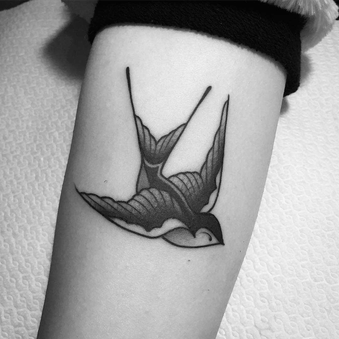 Появлением татуировки в виде ласточки мир обязан морякам. Появление ласточек в небе для моряков было знаком того, что земля близко. Таким образом, ласточка стала символом удачного плавания и возвращения домой. Тату с ласточкой стали делать в качестве счастливого талисмана. Однако такую татуировку нужно было еще заслужить, ее моряк мог сделать лишь пройдя на судне 5000 миль. Вторая ласточка появлялась спустя 10000 миль. Этими птицами отмечали и пересечение экватора. Опытный моряк мог похвастаться целой стаей. Эта традиция жива и по сей день, изображение ласточки часто можно увидеть на теле моряков или заядлых путешественников.