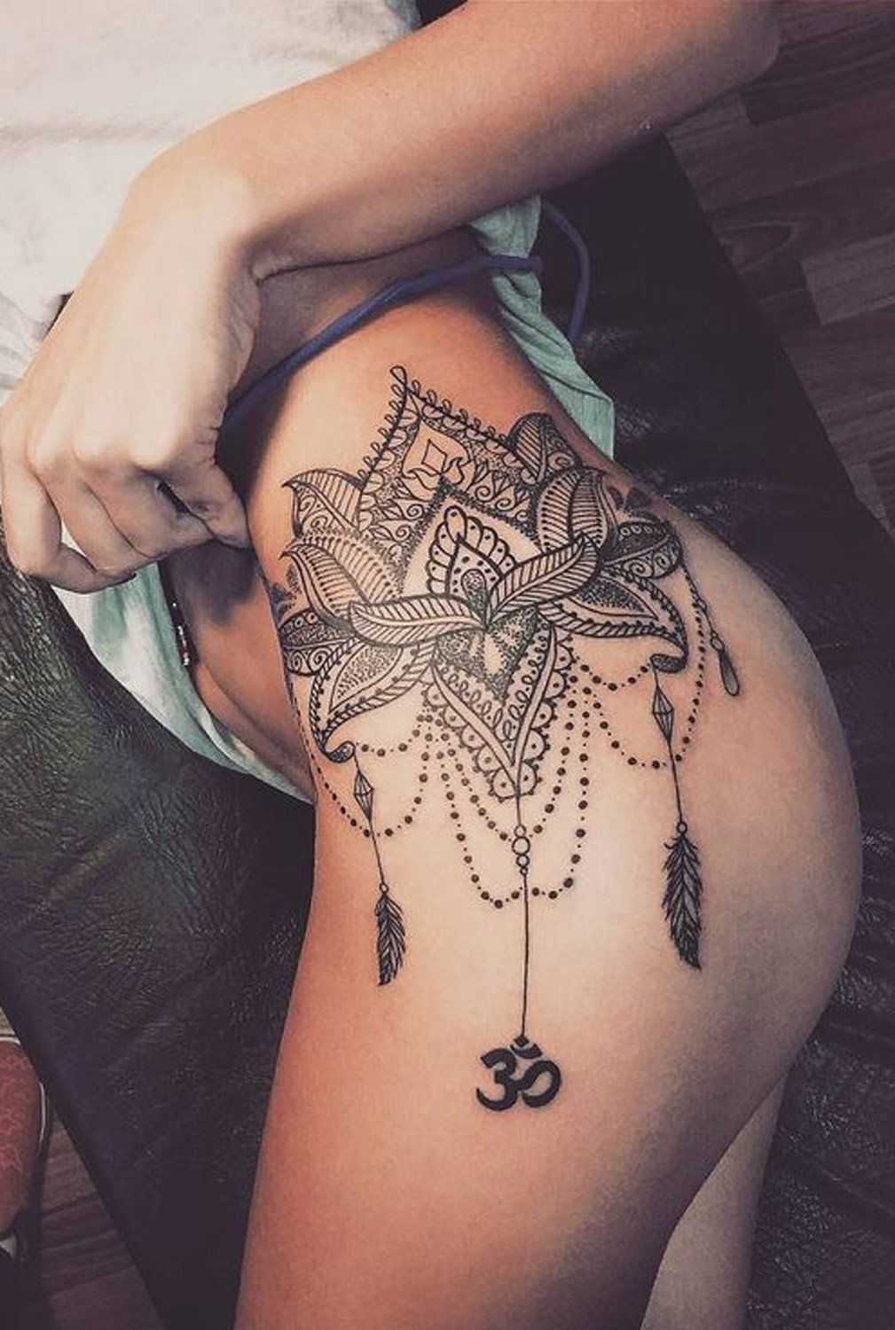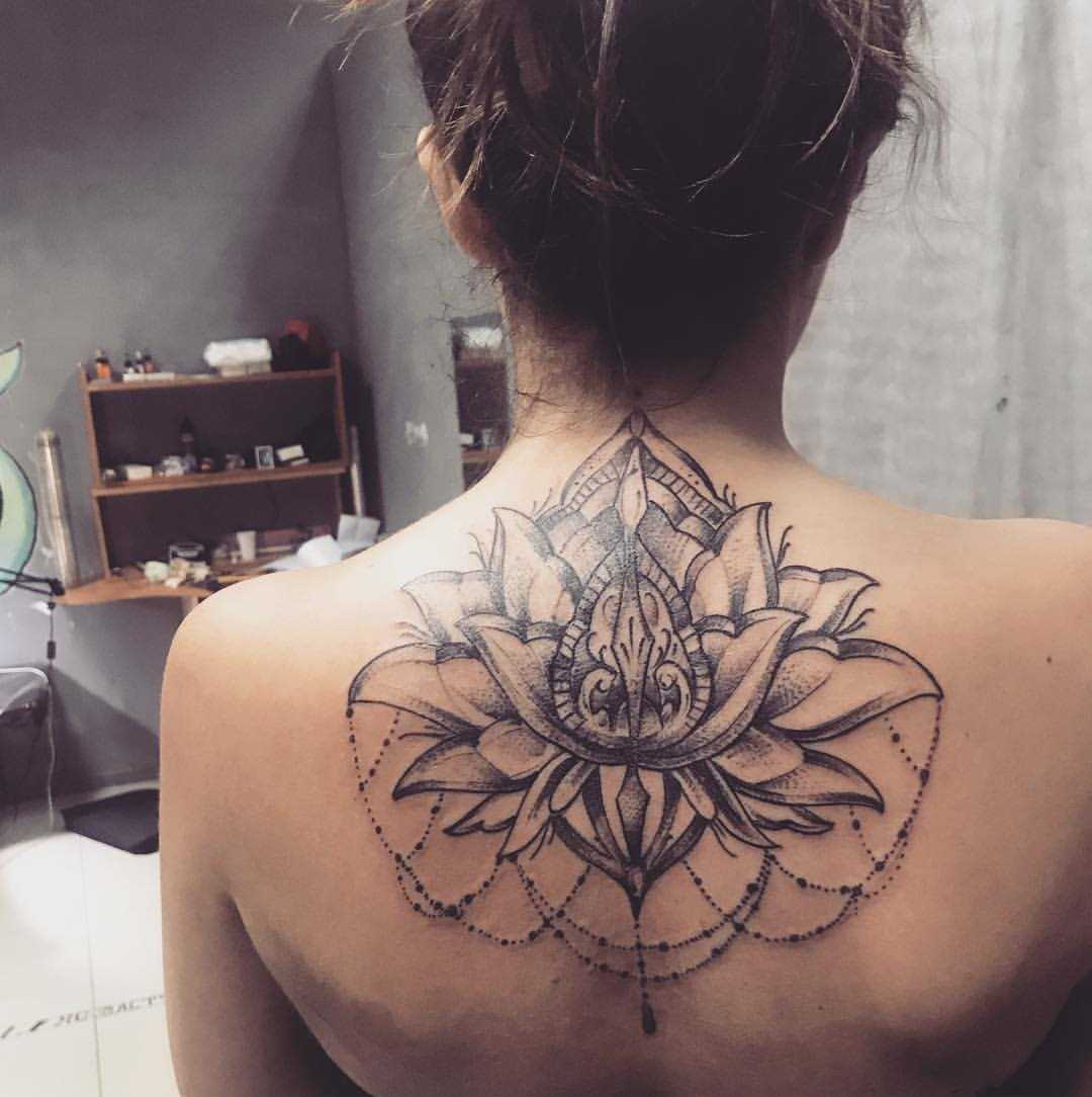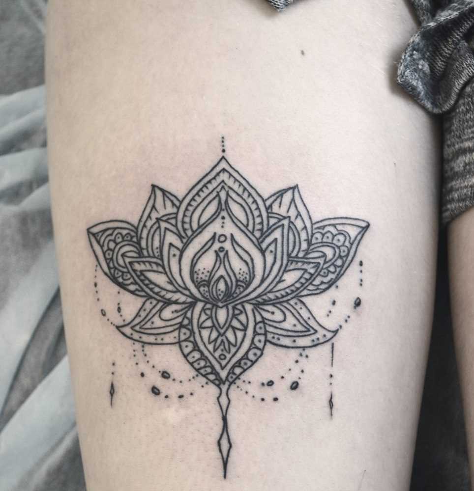 Оригинальный вариант – наколоть татуировку лотоса в форме мандалы. Она несет в себе сильную благоприятную энергетику, пробуждает к поискам истины. Такая мандала поможет носительнице тату в самопознании, раскрытие женственности и творческих способностей.