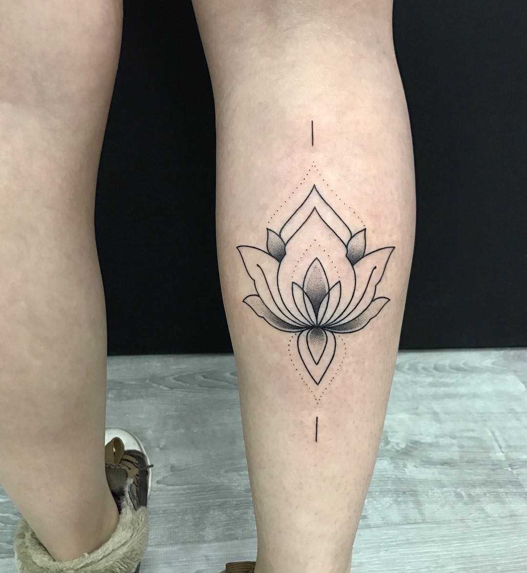 Женственно и соблазнительно смотрится тату лотос на ноге. Такое расположение удобно тем, что рисунок всегда можно скрыть от посторонних глаз, а значит, можно не переживать по поводу дресс-кода на работе.