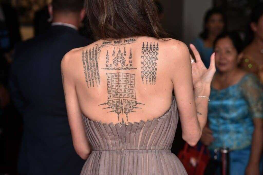 Анджелина Джоли также счастливая обладательница Сак Янт на спине, причем сразу во всех проявлениях.