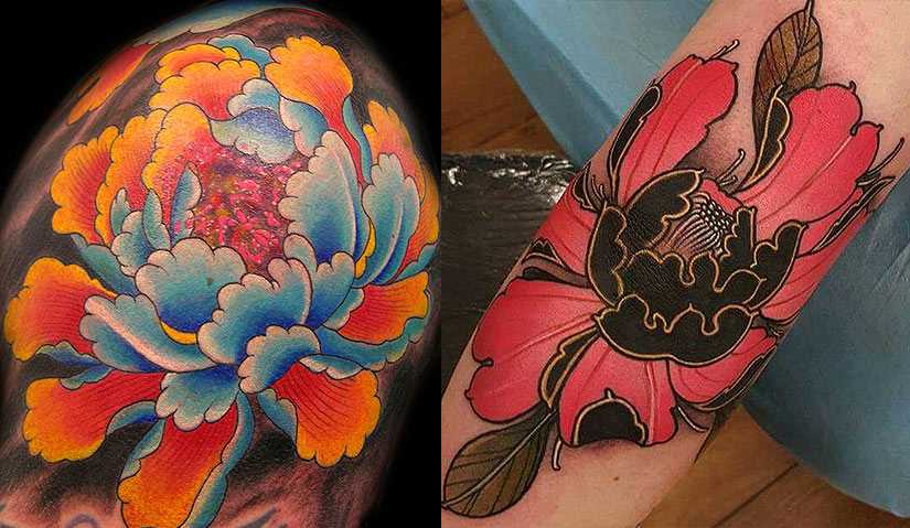 Одно из значений тату пионов – гармония. В Японии самураи наносили изображение пионов на тело рядом с татуировками диких зверей и драконов. Они считали, что цветок разбавляет агрессивное значение тату и создает некий баланс красоты и силы.