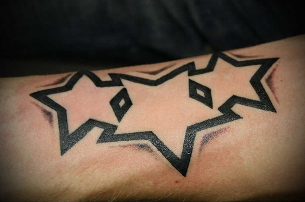 Зачастую парни изображают на теле небольшие звезды, означающие символ власти царя Соломона, Голеафа и Давида, которые принесут материальное благополучие, подарят священную энергию и защитят от недугов и различных бед.