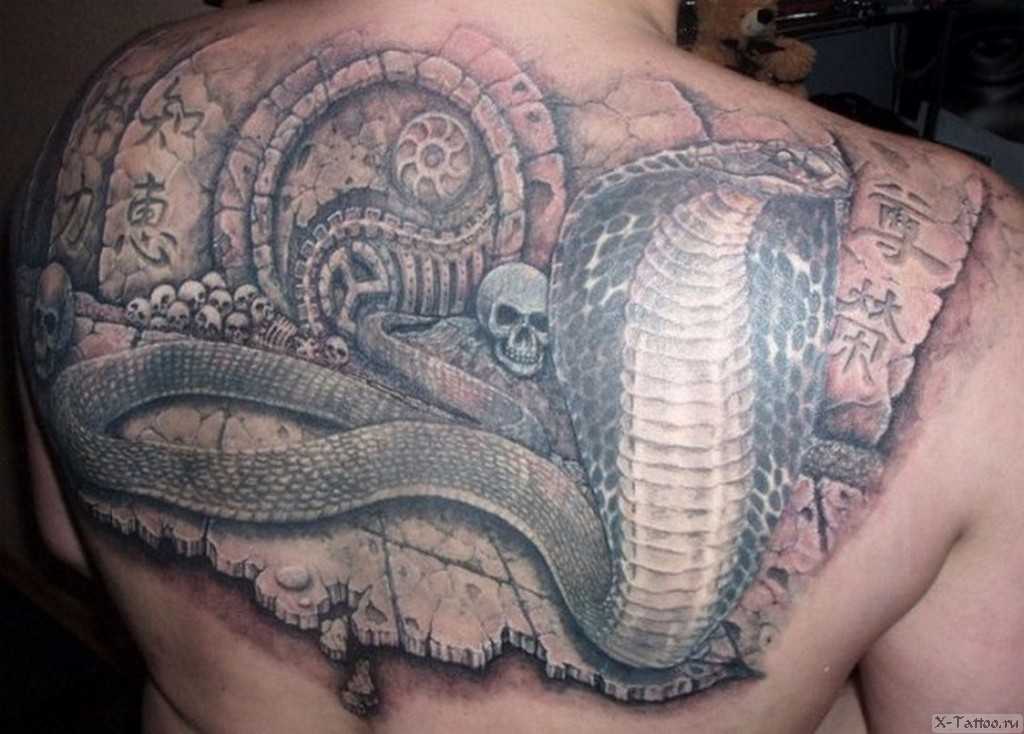 Для кого-то змея — это сила духа, характера и умелость отстоять свою точку зрения в любых обстоятельствах, благодаря умению быстро размышлять. Для других — это воплощение агрессии, хищности или храбрости и бесстрашия. Мужчины предпочитают наносить на тело объемные рисунки, поэтому популярными являются участки тела с большей площадью.