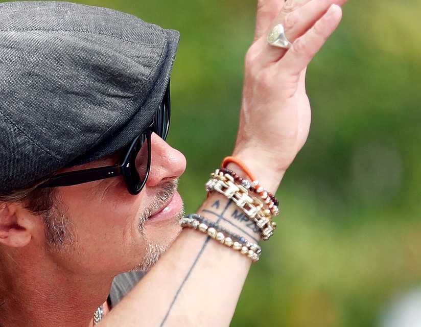 Помахав папарацци рукой, Питт продемонстрировал татуировку, которую он когда-то набил в честь Анджелины Джоли. Обычно после развода бывшие супруги стараются избавиться от напоминания друг о друге и сводят с тела татушки, сделанные в порыве страсти. Но Брэд, видимо, не торопится расставаться с татуировкой и продолжает носить на запястье память о Джоли.