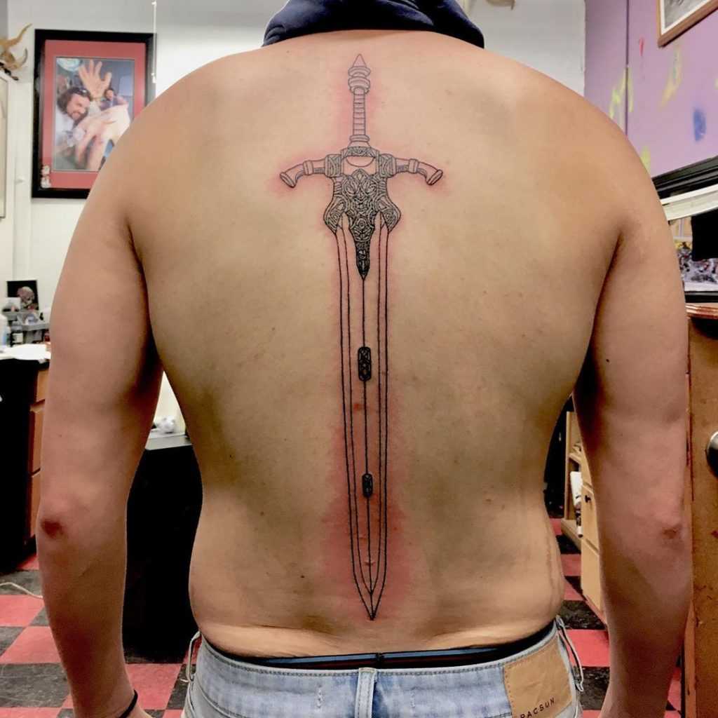 Изначально татуировка причислялась к ряду мужских узоров, так как метафорически меч приравнивался к мужчине, который в прошлом не мог обходиться без оружия. Для мужчины татуировка значит борьбу и победу, ради которой человек пойдет на все
