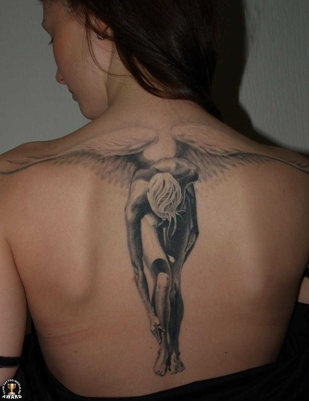 Эти неземные существа олицетворяют связь с Богом. Считается, что обладательницы такой татуировки наиболее приближены к божественной воле. Наряду с ангелами девушки украшают свое тело изображением креста, который считается символом вечности и веры.