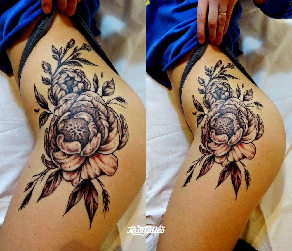 Тату в виде лилии обозначает чистоту и невинность, подсолнух символизирует очарование, роза – изящество и величественность.