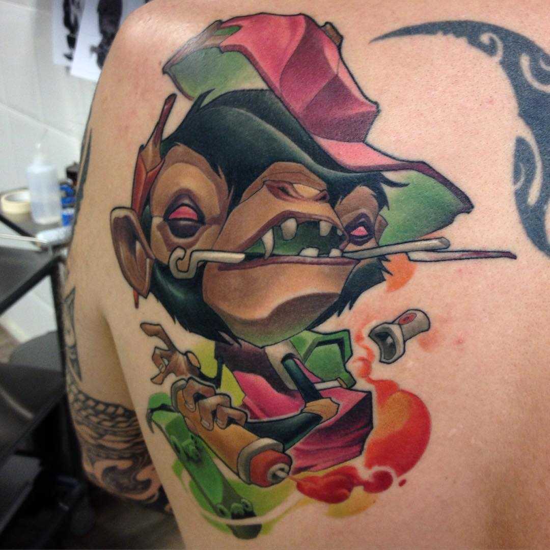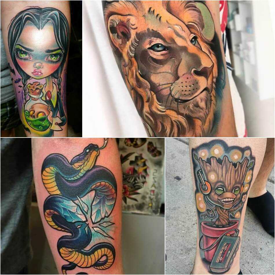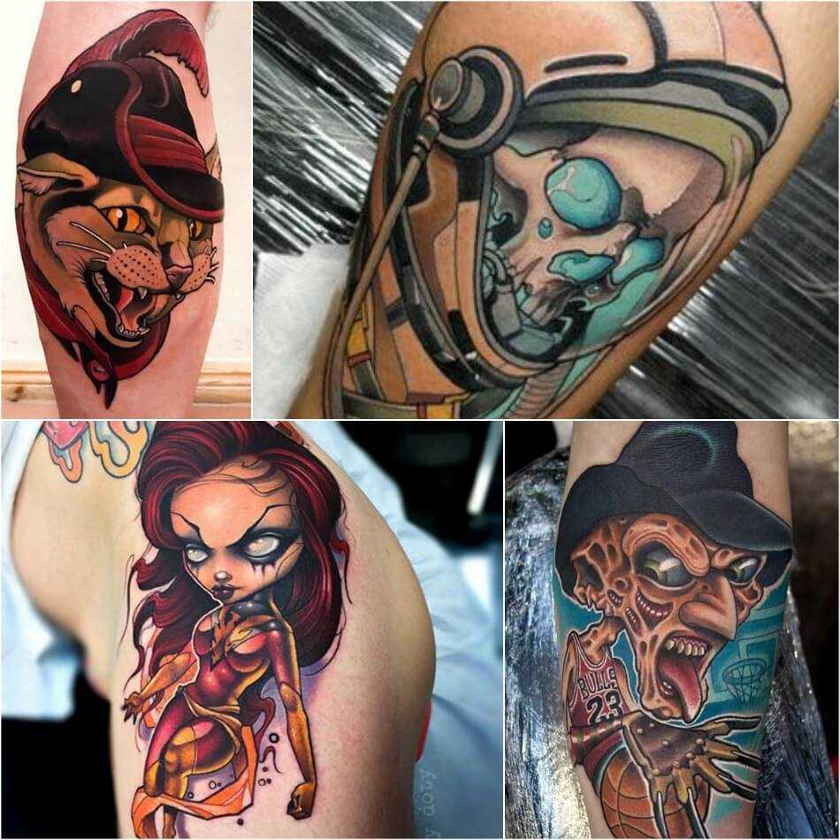 Яркостью красок и нестандартным сюжетом привлекают внимание самые смешные тату, на которых изображение привычных, несущих позитив персонажей мультфильмов, книг или игр нередко сочетается с реальными историческими или религиозными образами, напоминая о необходимости легко относиться к своим желаниям и потребностям