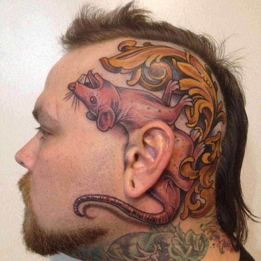 Представители сильного пола предпочитают смешные тату большого размера, выполненные в стилях Биомеханика, Трайбл, Трэш-полька или Дотворк. Самые популярные смешные мужские татуировки – это всевидящее око на затылке и, вообще, любые изображения с глазами на задней части головы, трёхмерные рукава или шедевры во всю спину, рисунки на ногах и руках, выполненные в технике Биомеханика.
