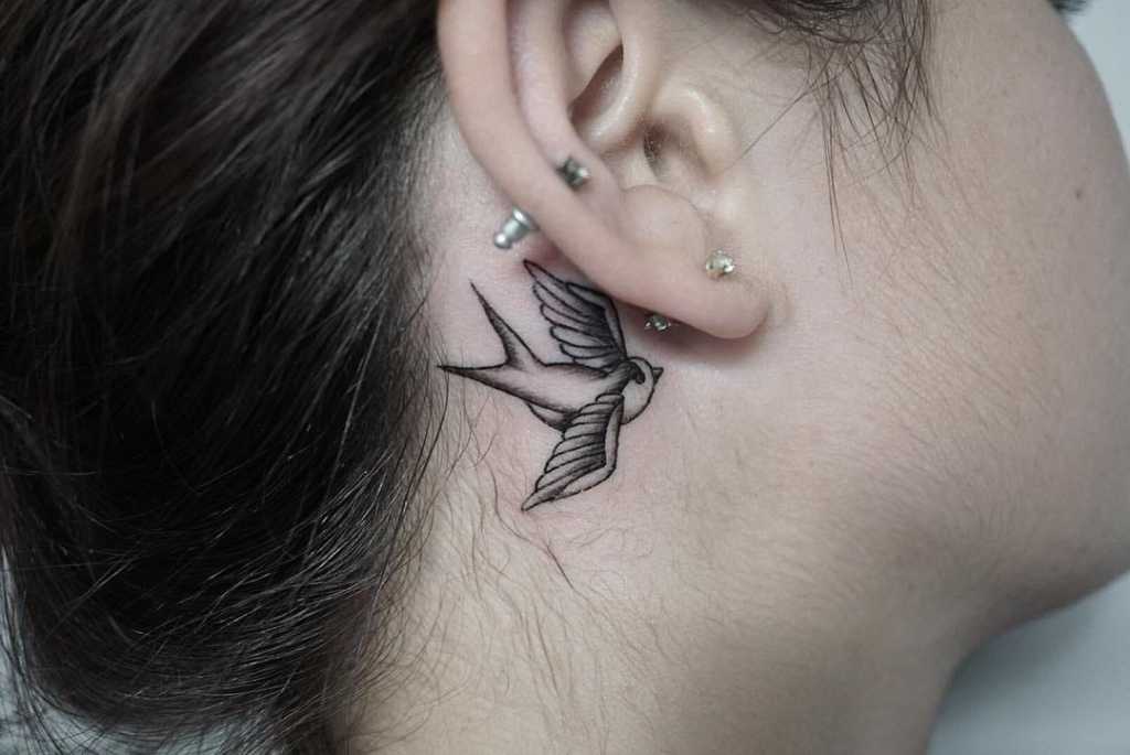 Тату за ухом для девушек: фото, лучшие идеи и эскизы со значением