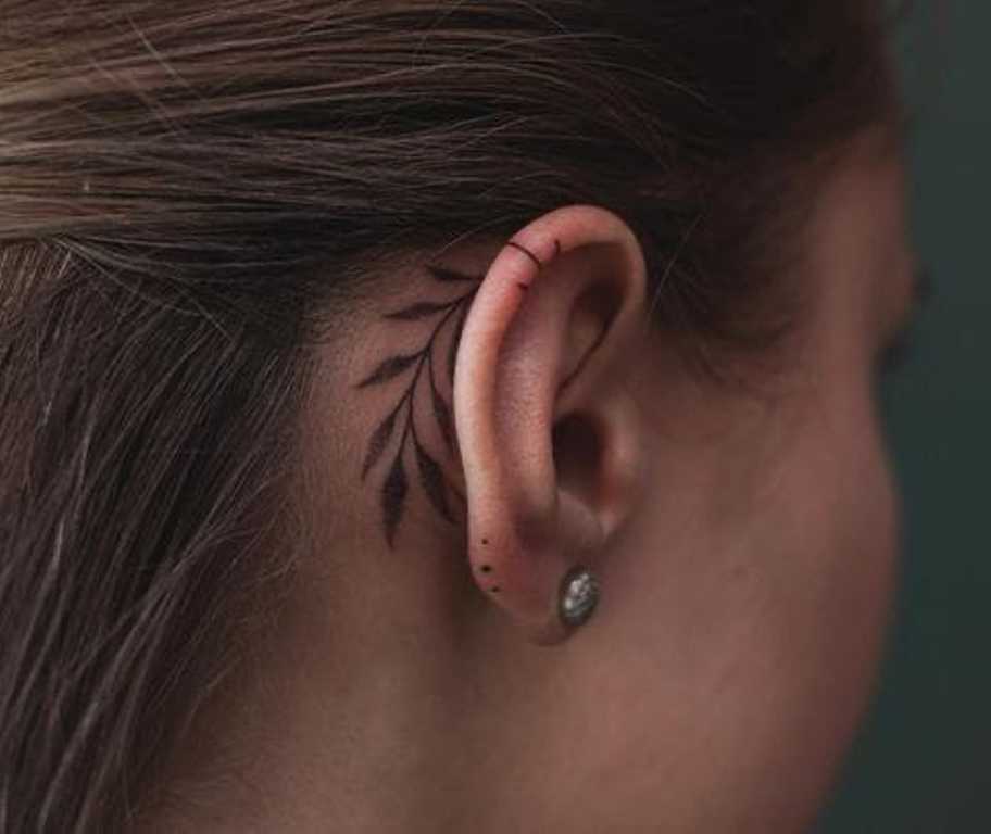 Флоральные мотивы (веточки, цветы, растительные узоры) являются самым популярным выбором среди девушек, сделавших тату за ухом.