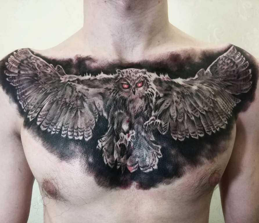 Тату Сова на Груди